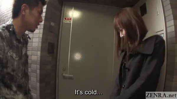 Now it's pretty obvious from the get-go that the survey portion of THE THRILL OF OUTDOOR TEASING is staged. Yes, survey conductors may exist somewhere in busier parts of the country, but they're probably not going to be approaching people on frigid days with actual falling snow. When people are walking out and about on days like this, the goal is to quickly find warmth. Our forefathers hunted for cozy lees against mother nature and today women like NONOKA hunt for cafes.
