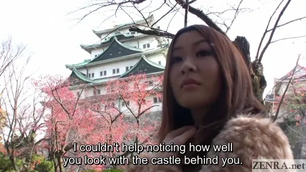 This time I was dying to get some footage of Nagoya Castle and brought along the perfect companion to make it very much worth it. Her name’s Hiromi Aoyama and she’s only 23! At a somewhat tall 167 cm (for a Japanese woman at least!), she’s been a lifelong swimmer and an avid fan of karaoke. But most important are her looks: very cute and sporting a very nice body. She’s also been single a long time—over 1 and a half years! And you know what they say about long-term singles in Aichi, don’t you?
