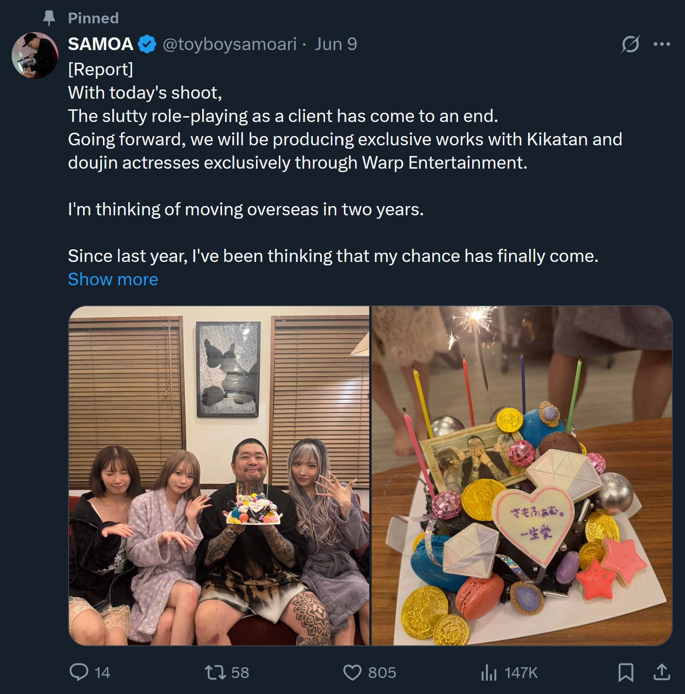 The actresses aren’t the only ones who might be leaving, as infamous JAV Director Samoari hinted at his own. In an announcement that he would become part exclusive to the studio WAAP, he also mentioned that he planned to move in 2 years. Unclear if that means he will be done with JAV, but moving abroad will make it very hard. Samoari has also been exploring adult filmmaking outside of Japan, so all of this may point to the end of his career in JAV.