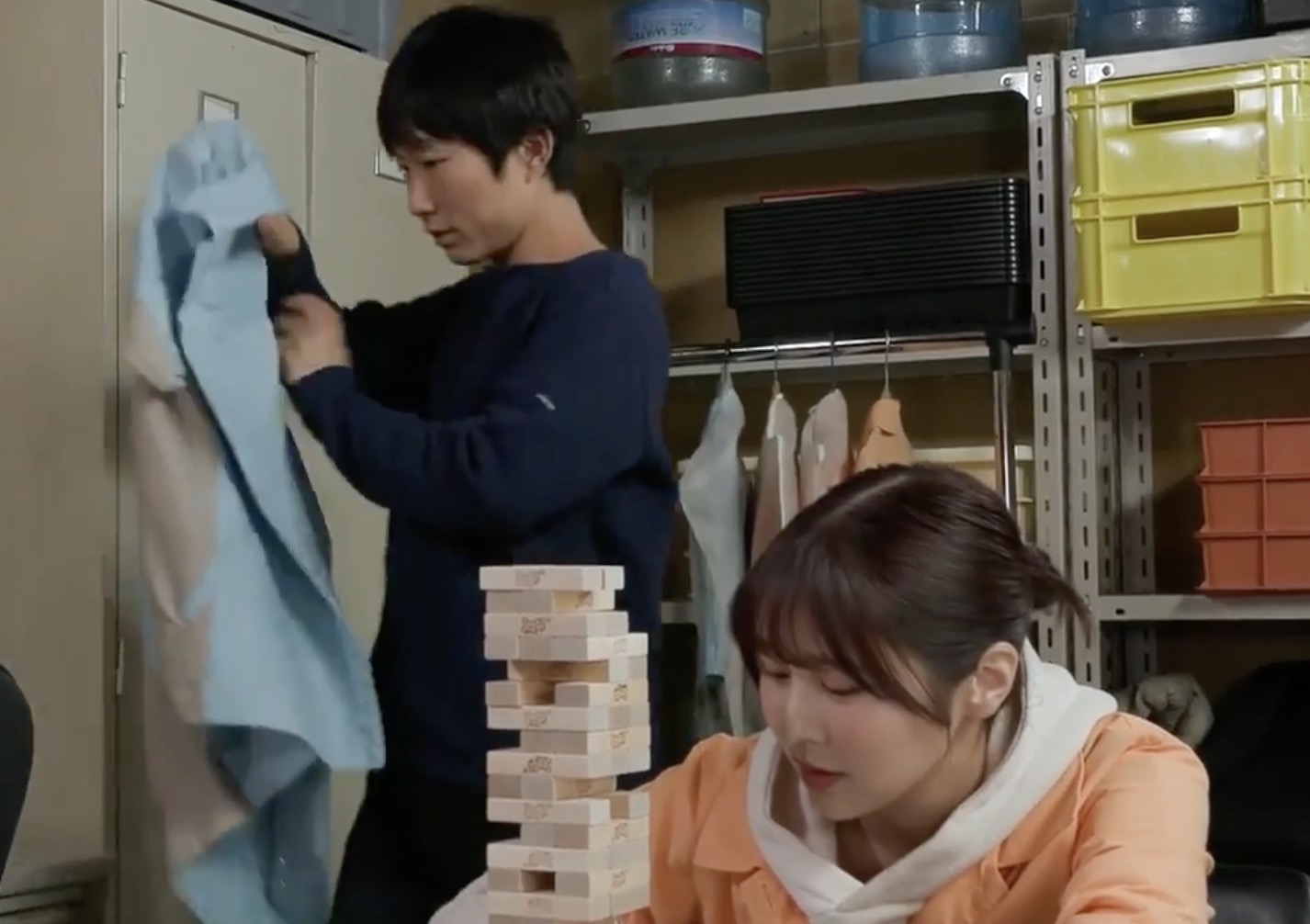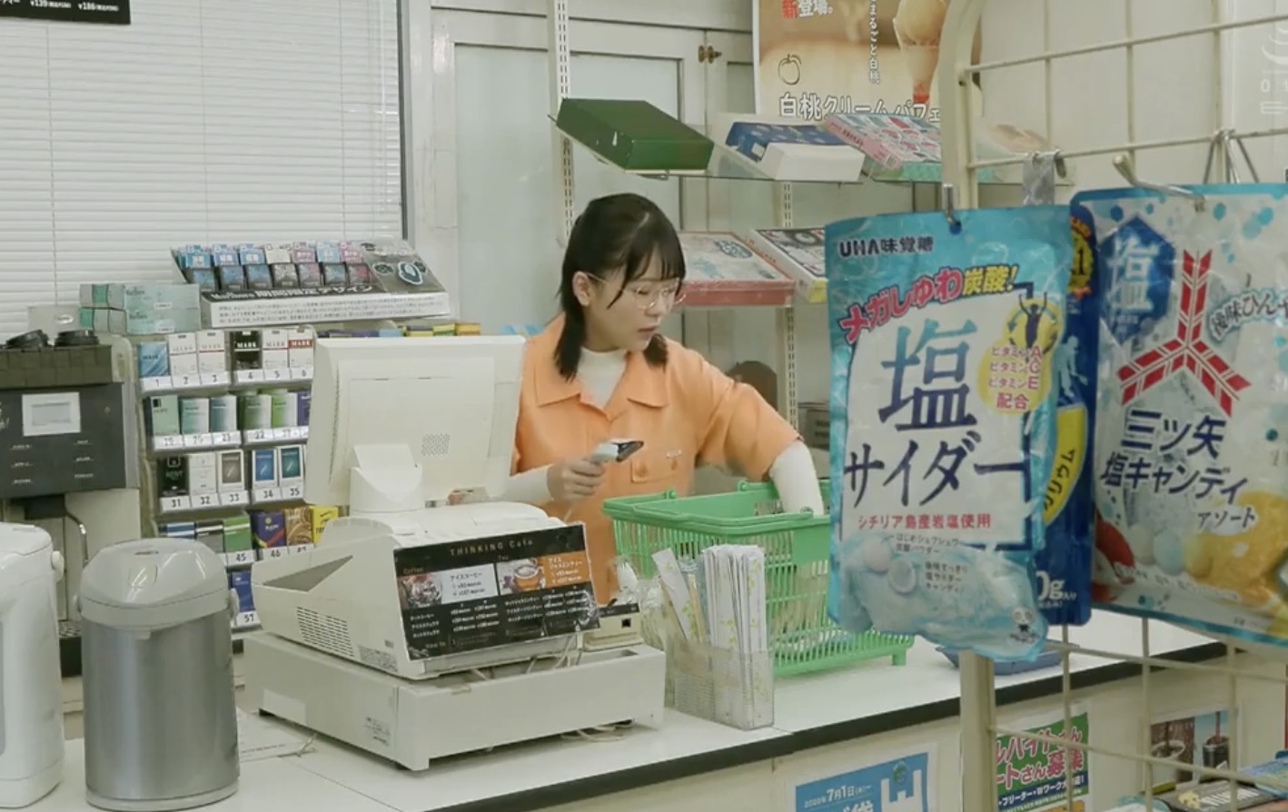 Finally we arrive at another drama-ish video by E-Body. This time, Meisa works with Konatsu Kashiwagi, and the setting is a local konbini (convenience store). Our protagonist is the youthful Yudzuru, who works with the two girls in the same store.