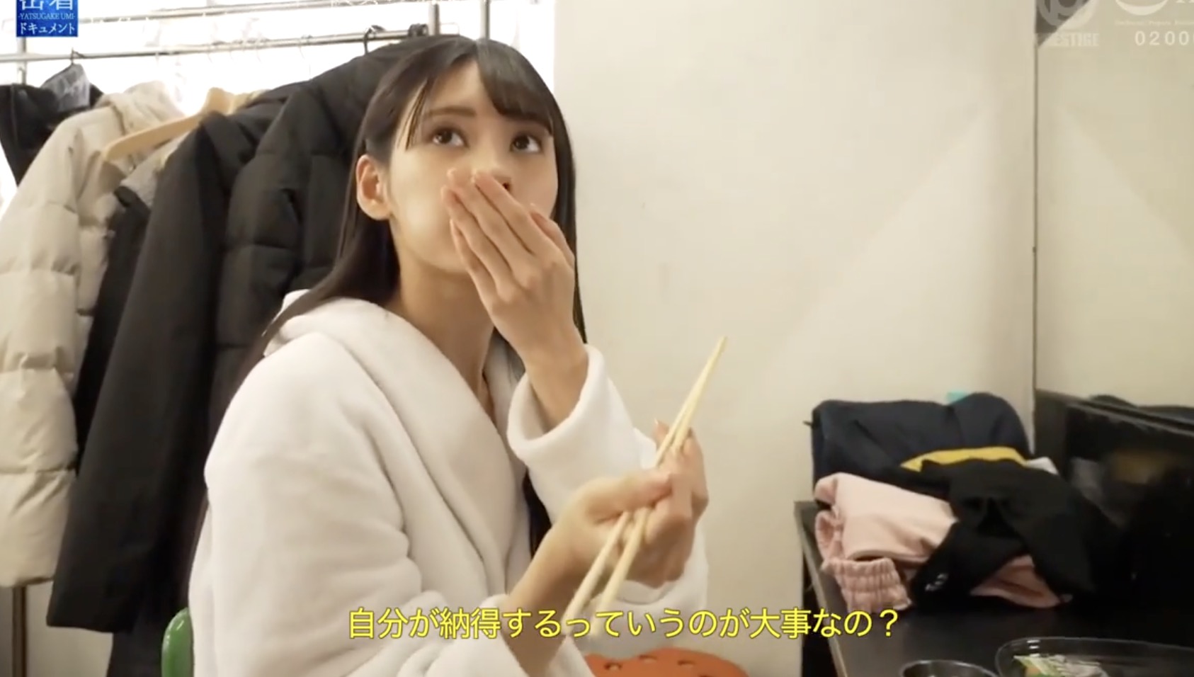 The intro to ABW-359 is quite interesting. It shows Umi’s routines in her daily life: eating, walking in the streets, resting in between shoots. She also reflects on her career so far. We see her watching her old videos and talking about her thoughts as an actress and as a person. Of course, these are all just foreplay to establish a sense of realism. Right before the first scene, we get some behind-the-scenes tidbits that show Umi in her most natural state.