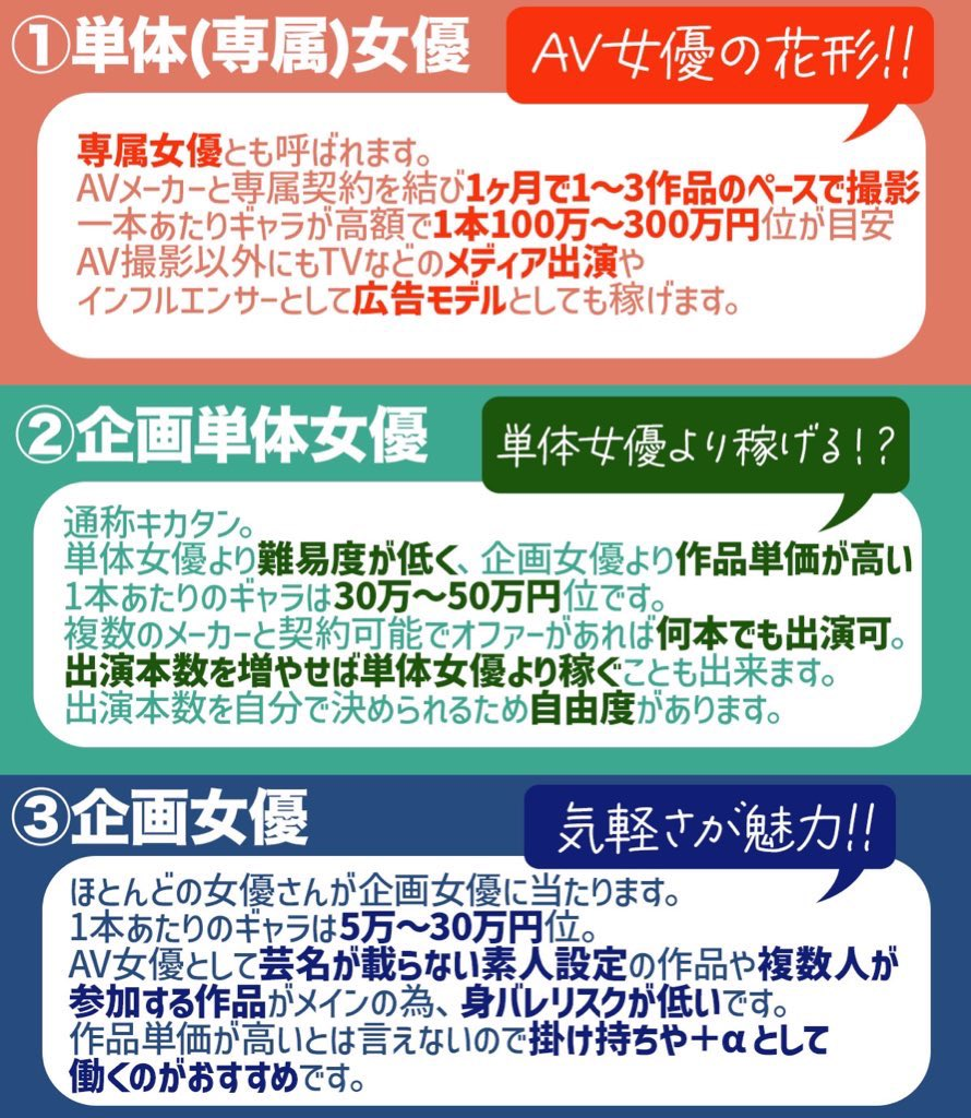 - Exclusive Actress (aka Eimi Fukada in this case): Mainly stars of the adult film industry, also called an exclusive actress. They sign an exclusive contract with an adult film company and shoot 1 to 3 films per month. The pay per film is high, usually from 1 to 3 million yen (approx $6,000 to $20,000USD) per film. In addition to JAV shooting, they can also earn by appearing on TV and other media, and as an influencer and advertising model.