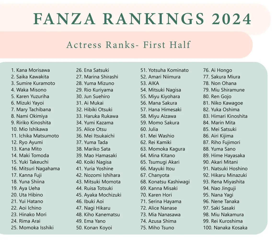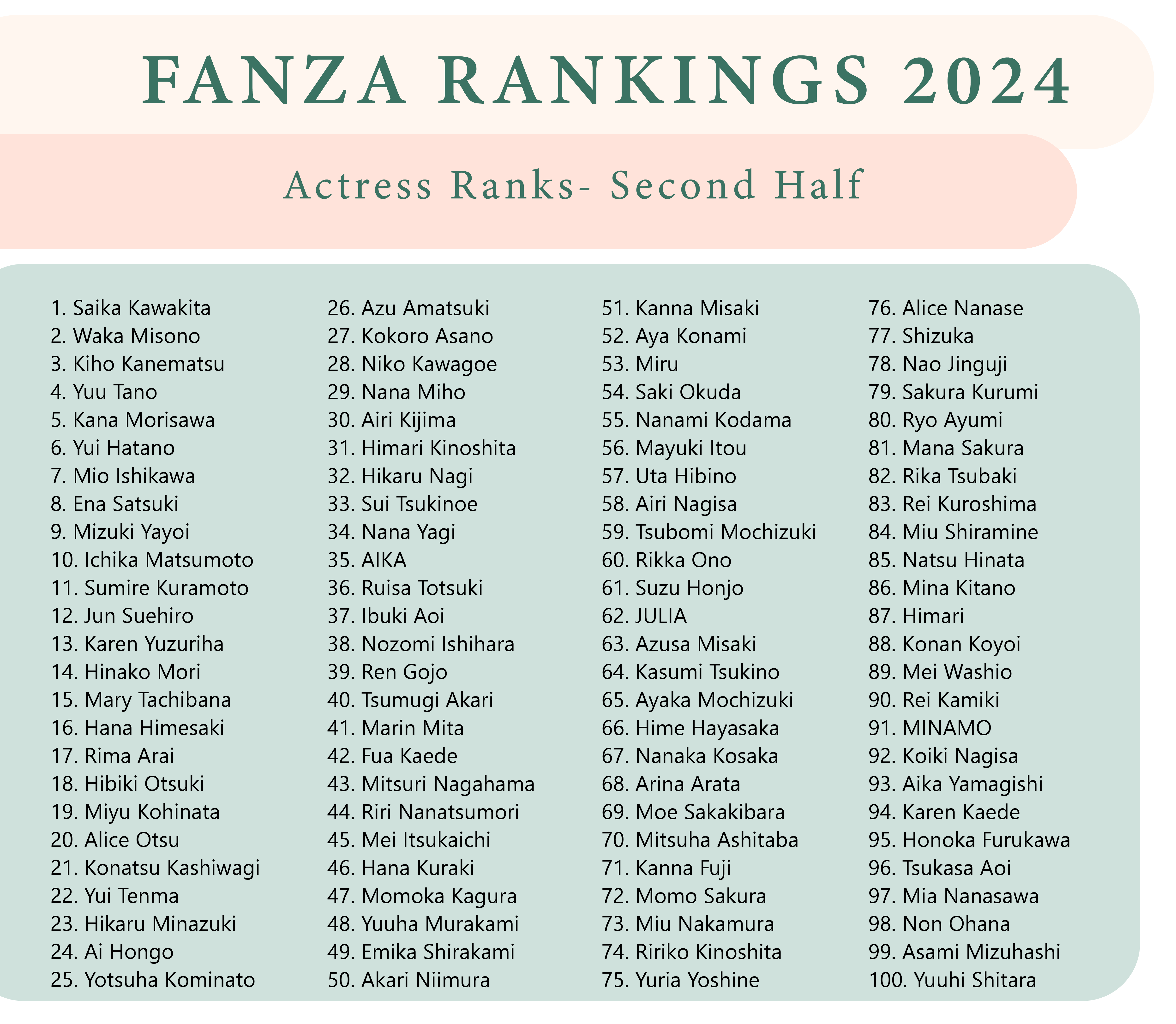 Last year FANZA decided to move their big Actress Rankings to their magazines and now they are finally all out. Today we’ll be looking into their Actress Rankings for 2024 for both the first and second half of the year. You can find the first half here and the second half here taken from FANZA's monthly magazine.