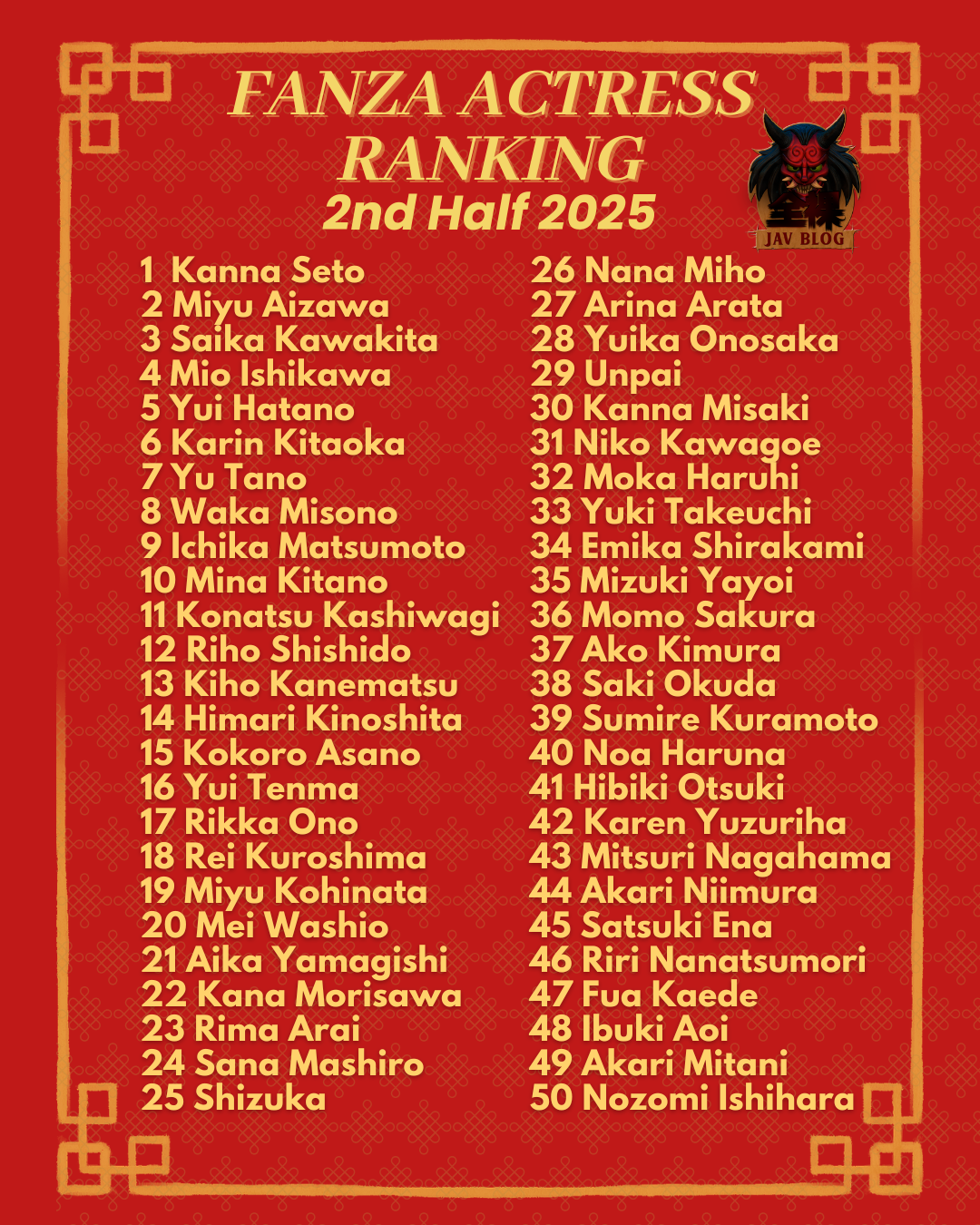 Kanna Seto completes the sweep of both halves with the #1 ranking. I don’t need to go on; enough has been said about Kanna’s ascension. Saika Kawakita goes at #3, falling to Miyu Aizawa and more on her later. Ichika Matsumoto proves that she is still part of the top of the top at #9, with her turn to exclusivity not hurting her much. Meanwhile, Yui Hatano’s extra thickness proves to be very popular among fans. A lot of people like plus-size ladies and Yui is proving that right now. Freelancing has been good to her and Karin Kitaoka, who jumps up to #6.