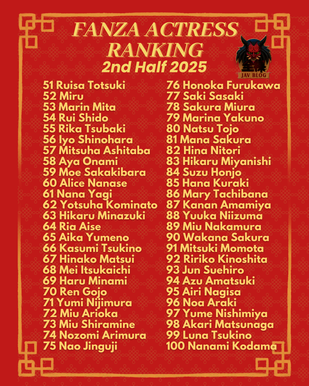 If you think being on the low end of the Top 100 is bad, then think again, because it is competitive out there. These ladies are going up against hundreds and hundreds of other actresses and there are some very big omissions to this list. Julia is the biggest omission and surprise, going from #44 to off the list. She’s been a favorite among fans for years a year now. Could her time be finally over, or is this just a blip? Rankings for Milfs are always on the lower end, as Yuna Shiina, Ryo Ayumi, and Nami Okimiya also find themselves out.