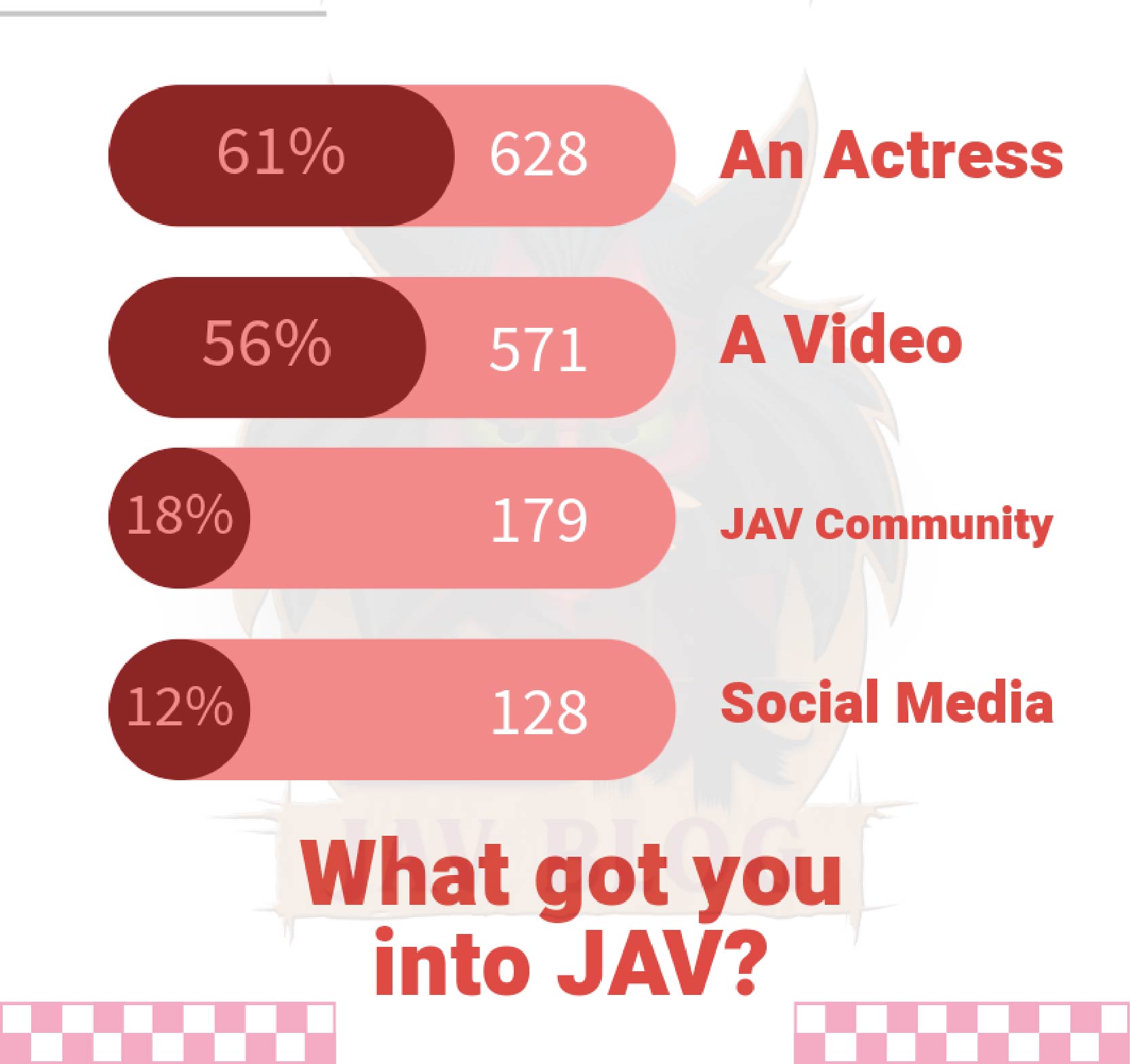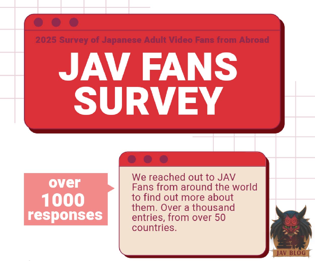 Once again, thanks to everyone who participated in the survey, it’s much appreciated. Wherever you are and whatever you like; I hope JAV has brought you some joy and know that you aren’t alone.