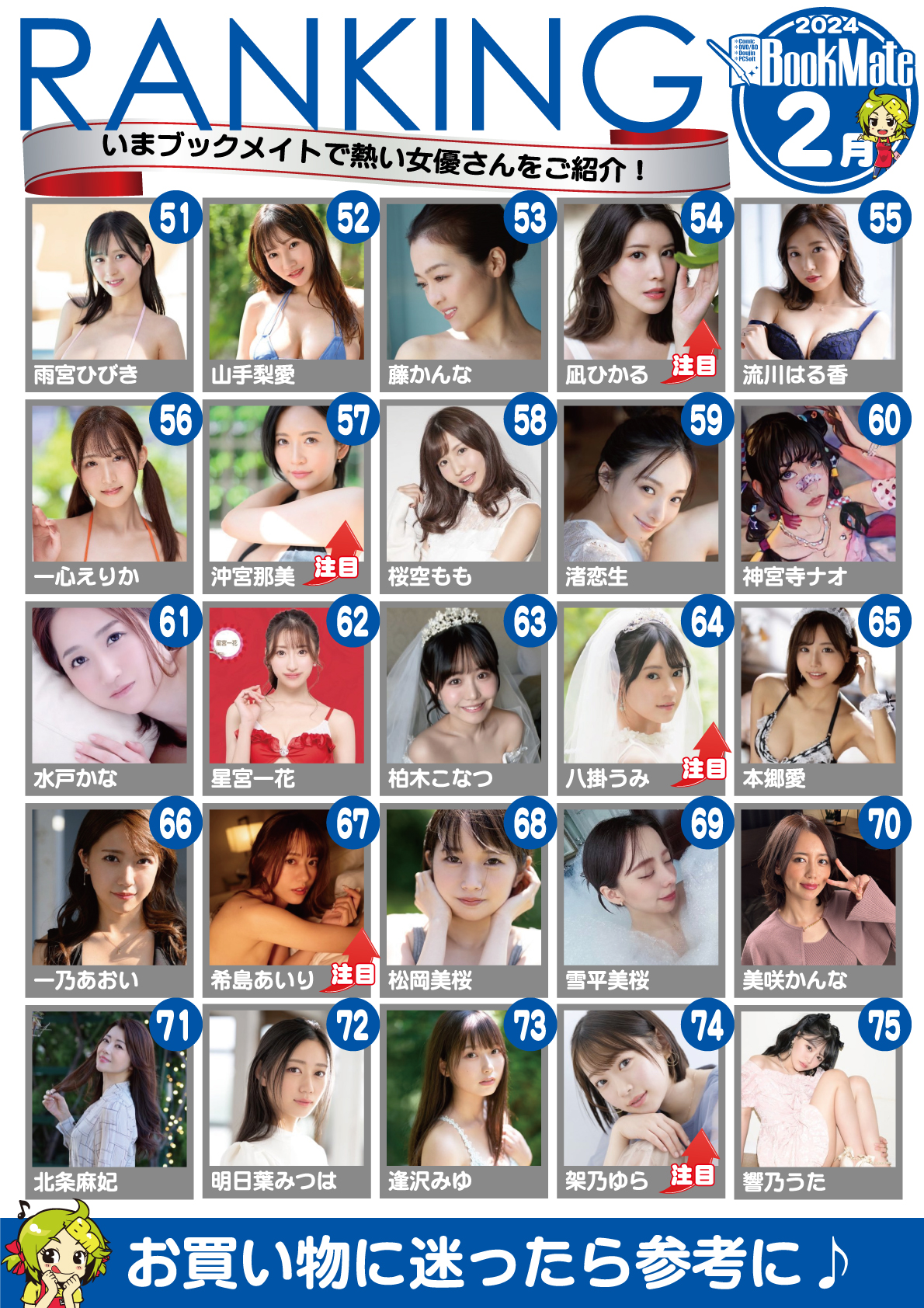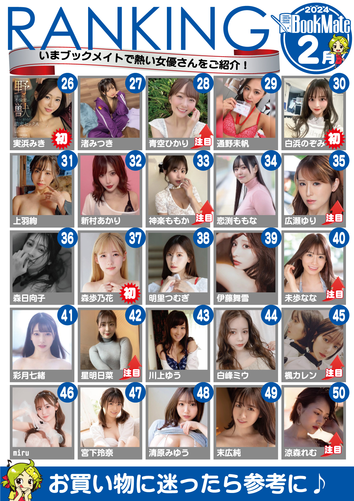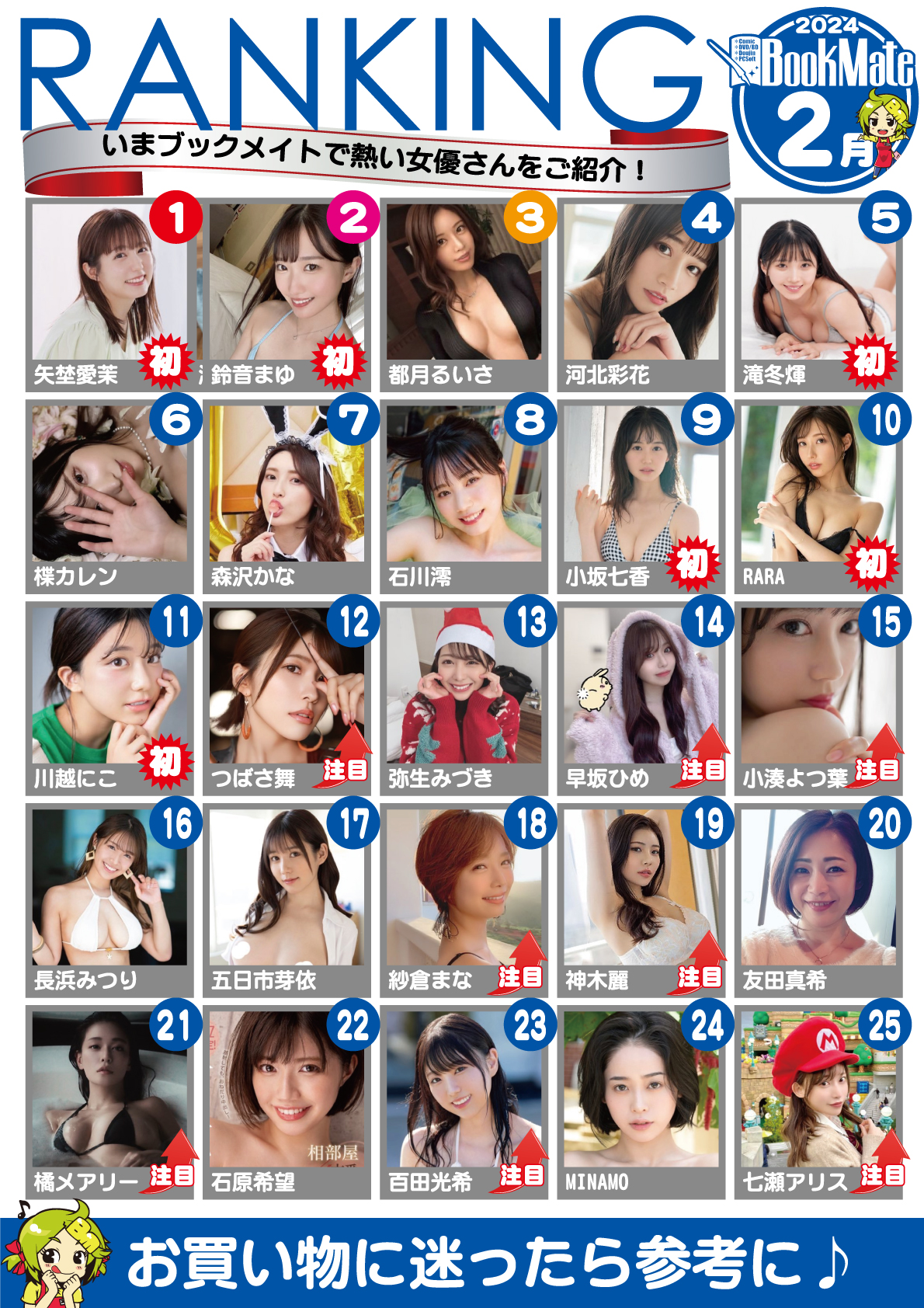 【2024年2月】ブックメイト月間女優ランキングの中に名前が載っていました✌️