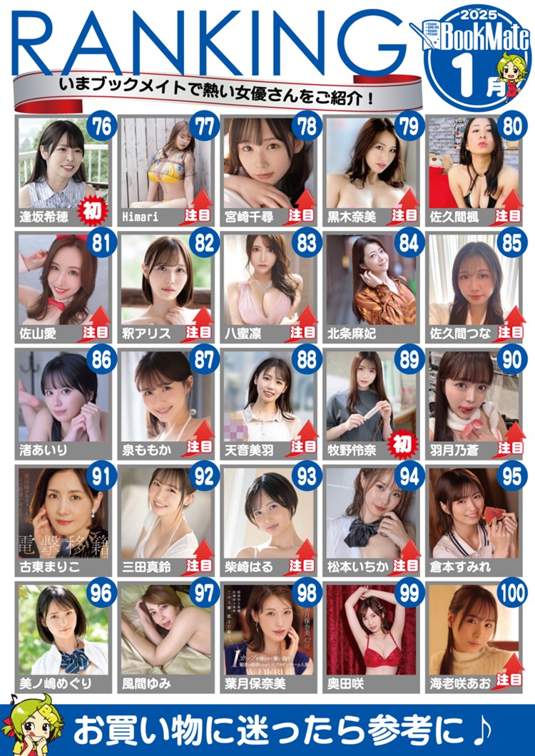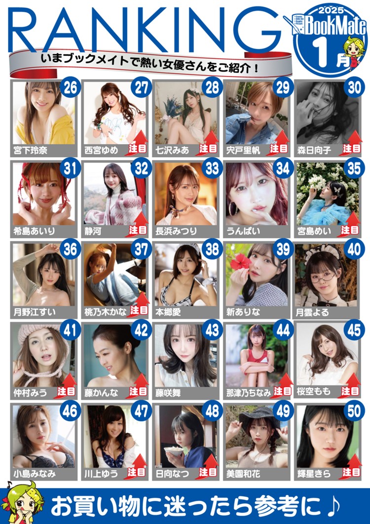 What an interesting month it is looking at Bookmate results. This page alone shows several Idea Pocket actresses doing well. Yume Nishimiya (西宮ゆめ) in 27th, Mitsuri Nagahama (長浜みつり) in in 33rd, Kana Momonogi (桃乃木かな) in 37th, and Momo Sakura (桜空もも) in 45th. It’s starting to feel like Idea Pocket is back in business with some of the actresses they have. There’s some great veterans and promising debuts and I think we’re eating pretty good at IP right about now.