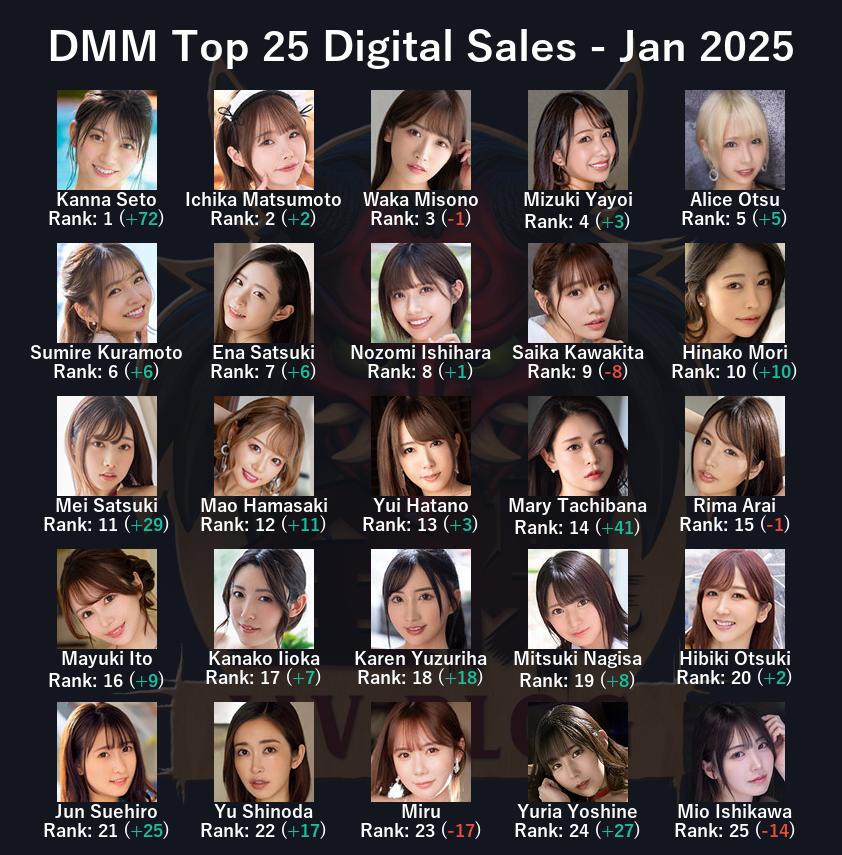 Kanna Seto continues to lead the pack of 2025 debuts. It’s still very early in the year so we’ll see how she fares when other busty women come along, especially some further contention from S1. We tend to see multiple a year from just S1 alone these days and I want to see how some of these fans react when she gets some competition.