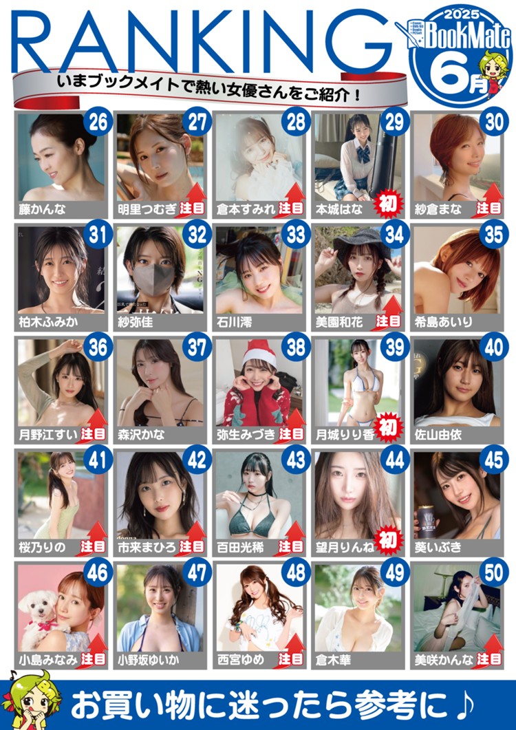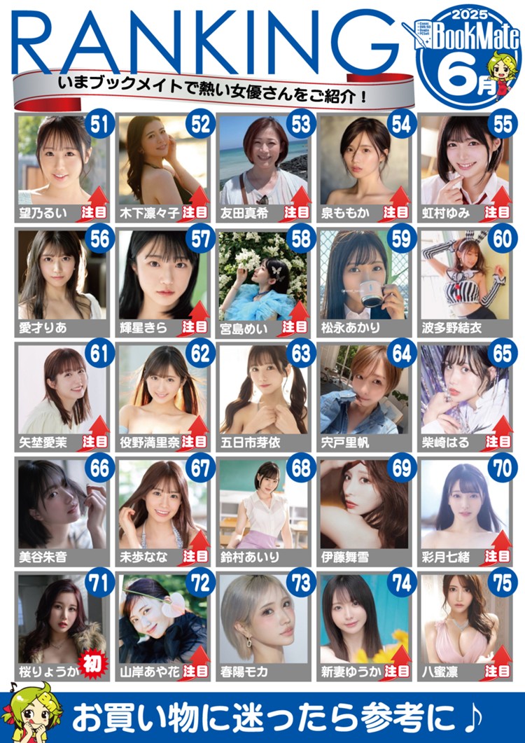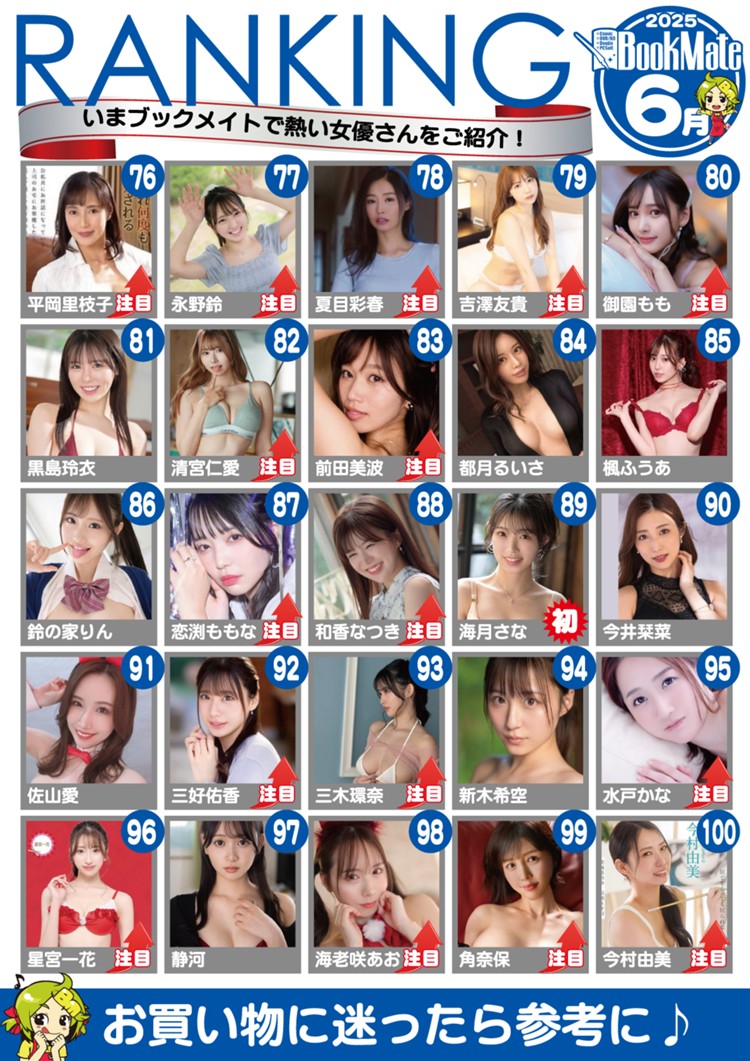 Mitsuri Nagahama (長浜みつり) stealing first place from Kanna on this list is wild to me. I mean I like Mitsuri as much as the next guy does but the bar for Kanna was really high and Mitsuri was not the one I expected to take over. I guess it helps when you get some quality releases, and man does she have some. While Bookmate’s results are probably more due to the Harlem (this will never stop being funny to me) release, I expect good things next month too. We already see others doing well like Saki Sasaki in 8th and Momo Sakura high on multiple lists, but will be interesting to see how this continues to play out for Mitsuri.