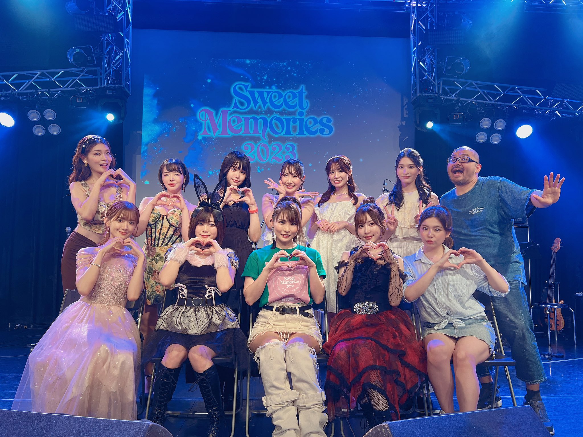 The Sweet Memories 2023 concert features a bunch of different AV actresses from all over the industry. Stars and newbies and old vets with talents like Suzu Honjo, Moe Amatsuka, Airi Kijima, Ai Honjo, Tsubaki Sannomiya, and much more. A shoutout to the band too, the backup band features Gen Hirakata (平方元) on keyboard and chorus with Masato Fukuda on guitar and chorus. The bald Gen is the unsung hero of the crew who has to wear a lot of hats to cover all these songs. Now let’s look into the singers and see whose got the goods.