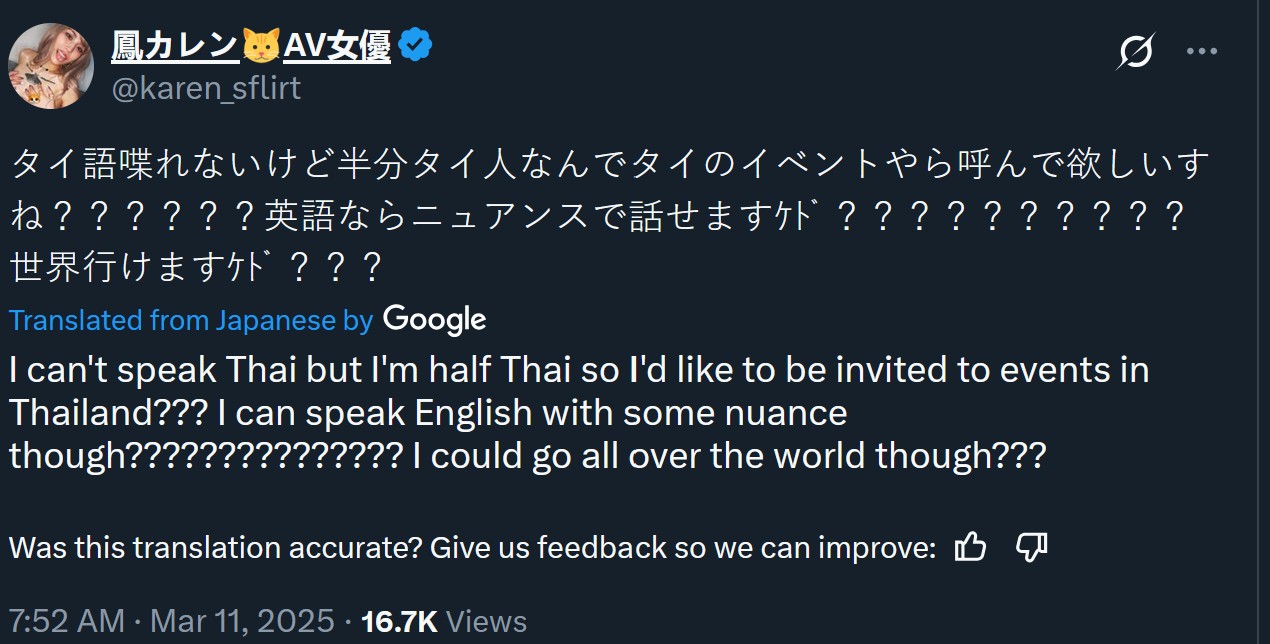 The hard partying and tattooed Karen Otori casually revealed her Thai roots online while asking for work in Thailand, even though she can’t speak the language. With her tattoos, Gal style, attitude, and mixed background, Karen is one of a kind. On a sidenote, she can speak a bit of English, though, as shown on some streams. Half Thai or not, Karen is full Gal. Few embody the free spirit and devil-may-care attitude of Gals like Karen.
