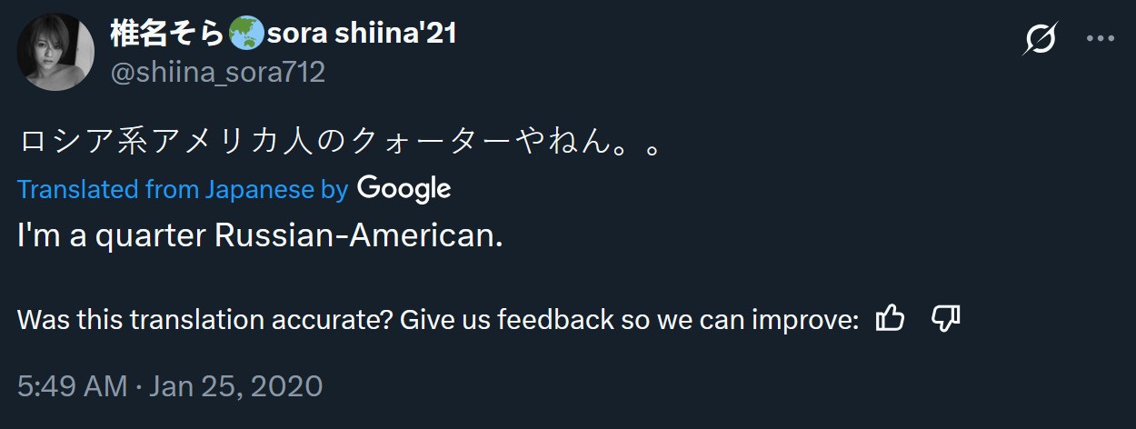 Fans might be surprised to learn that Sora Shiina is part Russian, as the tomboy of JAV revealed in an interview about her European roots in an interview with FANZA. On her socials, she describes herself as a quarter Russian American, which is a bit confusing. The small and spunky Sora has always been an outlier in JAV with her cheeky attitude, tomboyish looks, and open lesbianism. So this revelation is just another feather in the cap that makes Sora one of a kind in JAV.