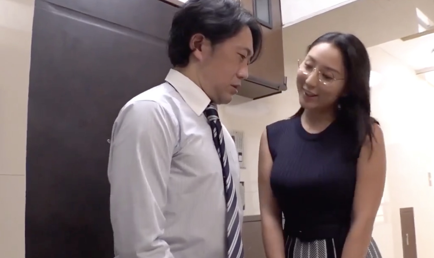 The sneaky sex starts their explosive sex affair. They fuck in every corner of the house. One particularly hot scene occurs when the guy was on his way to work. At first, Yuri engages him in small talk using very polite language, typical of in-laws. However, she couldn't take it anymore so suddenly pounces on his cock and begins to devour the guy. She was so horny that she was touching herself while she blow him. After cumming, the guy hurries and leaves for work because he is already late.