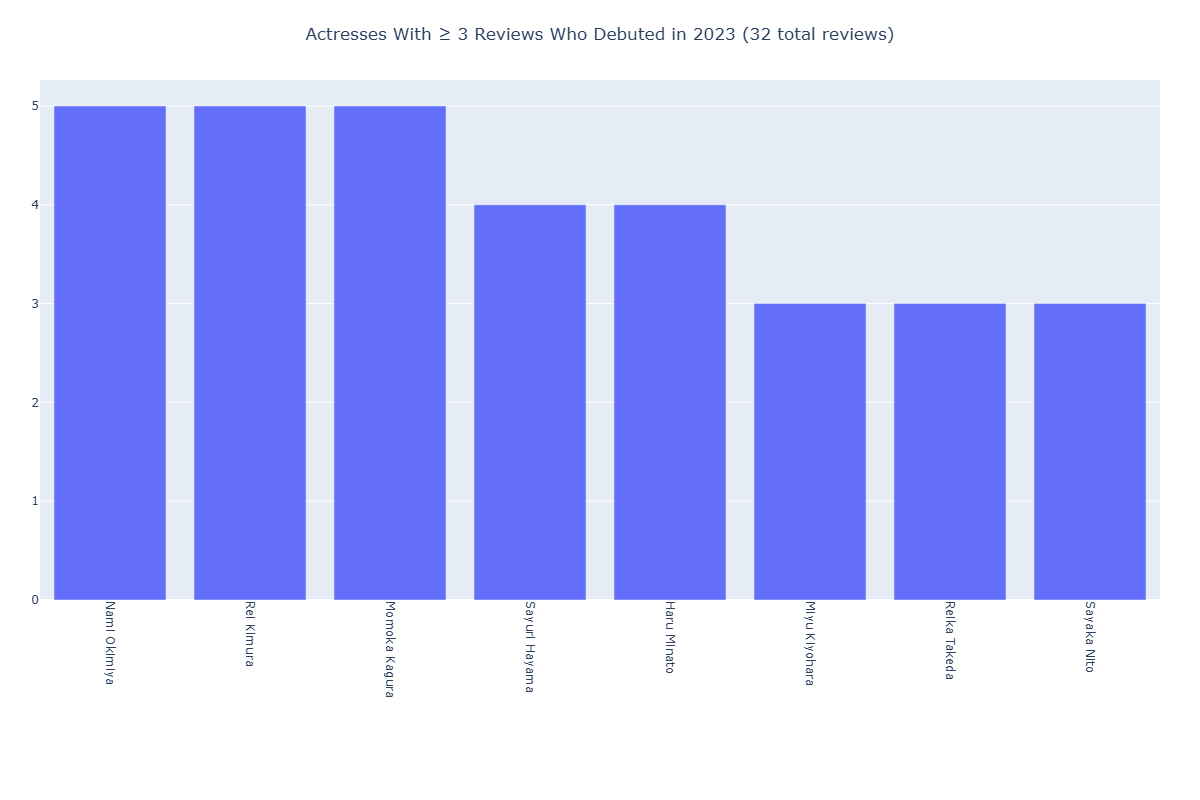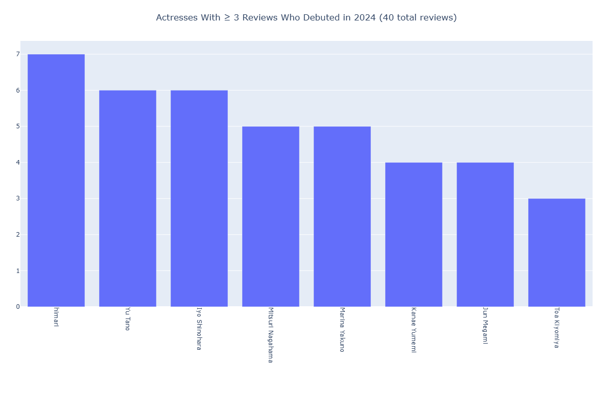 2024 was another fantastic year and it seems like that’s the trend with debut years these days. Multiple actresses just really crushing it. I do think that to some degree this is due to the quality of busty actresses we’ve been seeing but it just generally feels like there’s a resurgence in debut quality. We’re also seeing trends that look like they will carry over this year as well, and I’ll have to remember to check back in a year and see if it did.