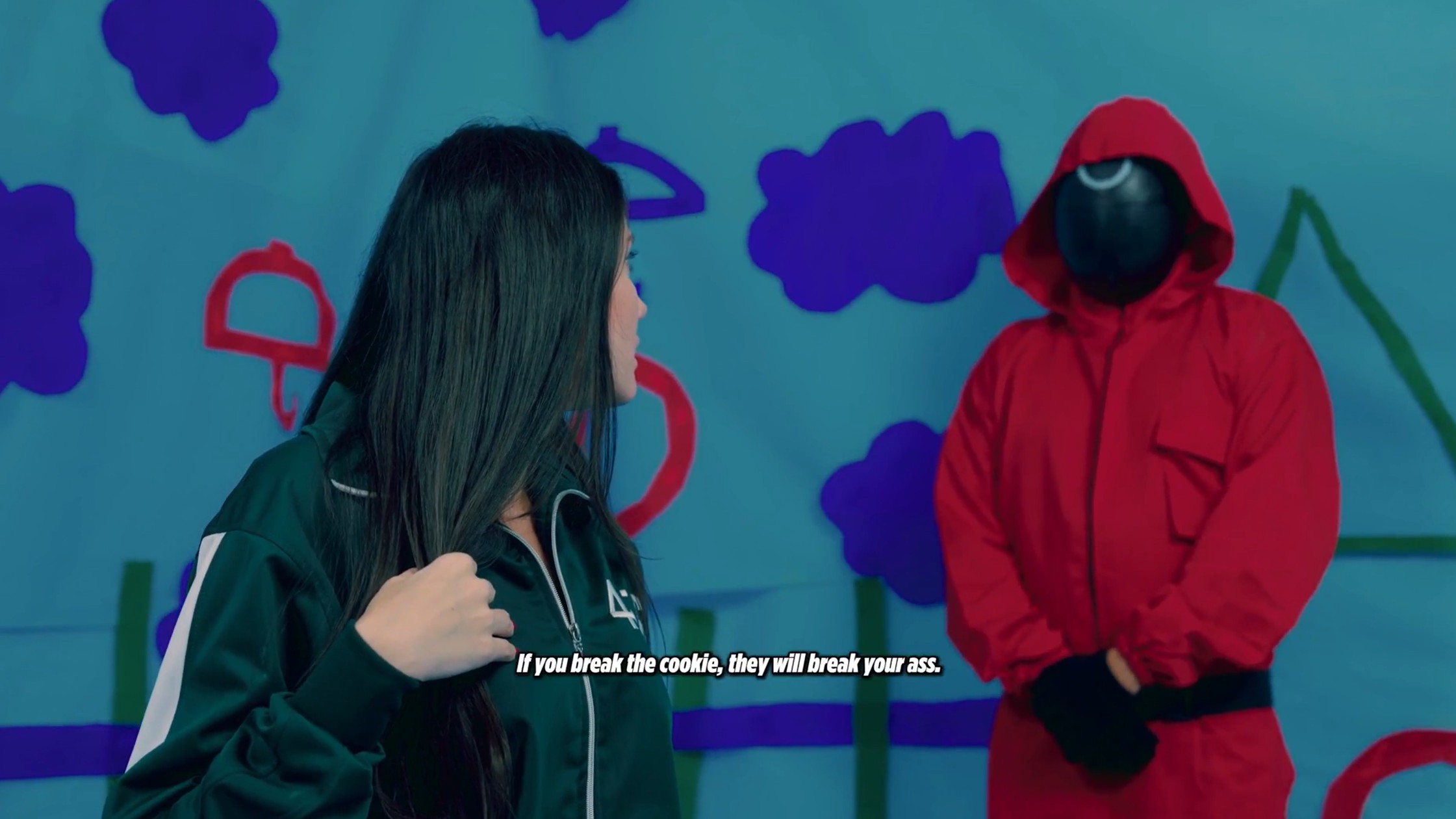 Spain brings in a pair of parodies; one featuring the guards and the other with the Dalgona game. It also has, hands down, the best background scenery.