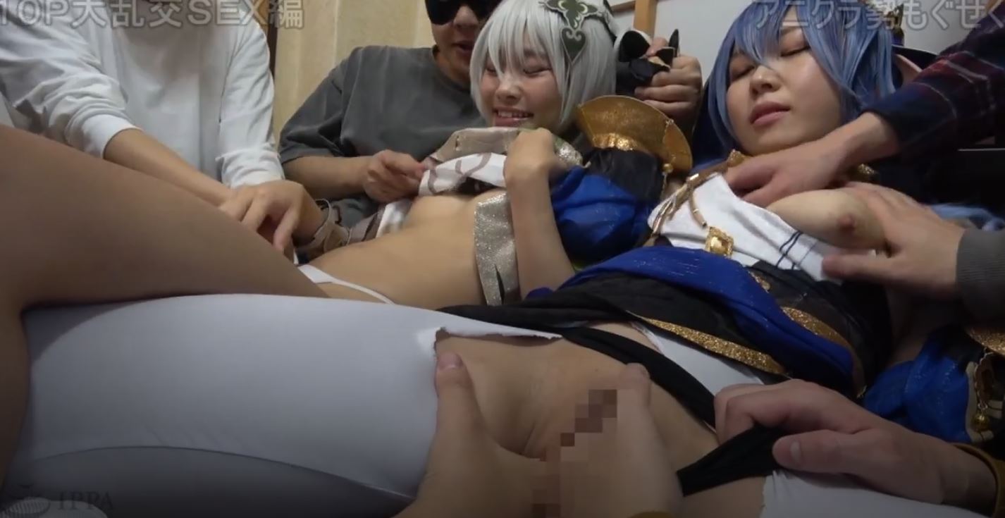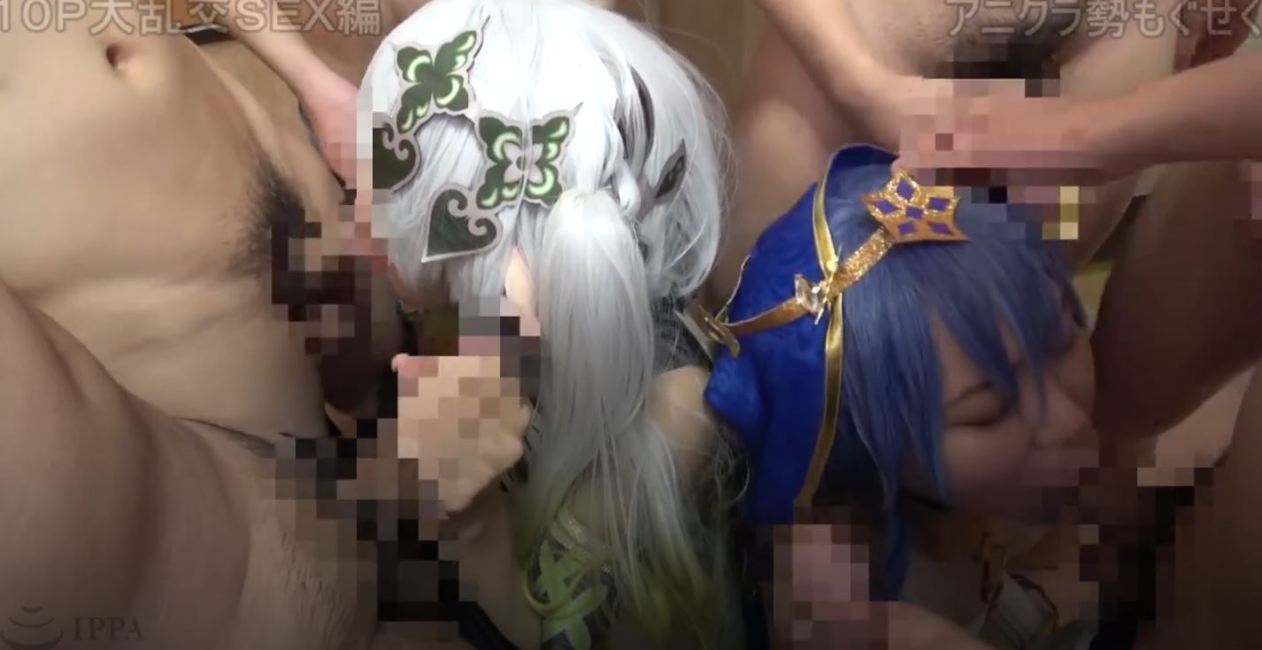 Two cosplayers have fun with a group of guys in this JAV, making it different from most others on the list. The orgy antics in this are amazing as each girls suck and fucks, taking turns with each guy. There's tons of stuff happening at all times, and the sex is very fast-paced. Seeing the guys form lines behind each girl has its appeal, and as each guy has sex with a girl, he immediately pulls out to cum on her body, which is different from other movies on the list, which mostly just had guys cumming on a girl's face one after another - I like this deviation.