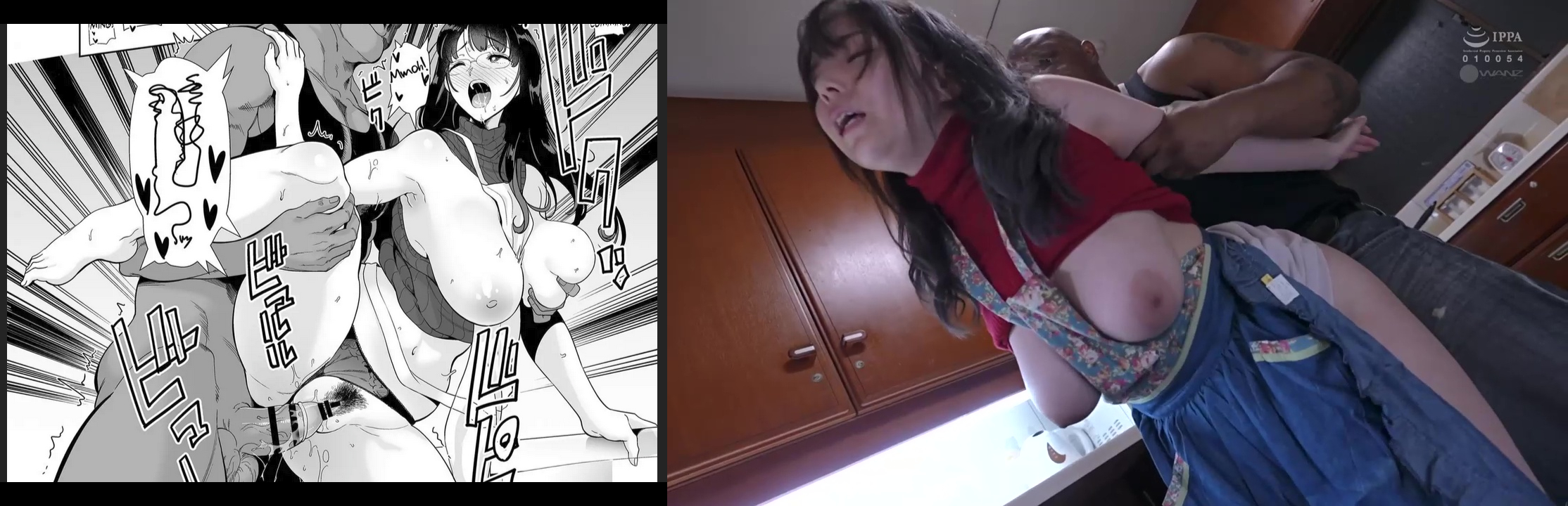 NIMA-019 is without a doubt one of the most pinpoint-accurate doujinshi adaptations I've ever seen. Every scene and every position is captured exactly as it was in the manga. What I love in particular here is that they will often do a side-by-side comparison on screen with the manga panels which helps with the engagement making it easy to follow along. There's no added content here but that doesn't really matter when the original manga was already pretty meaty. My favorite highlight overall has to be the first sex scene when she's getting it doggystyle and prone bone. The intensity of the action is captured really nicely.