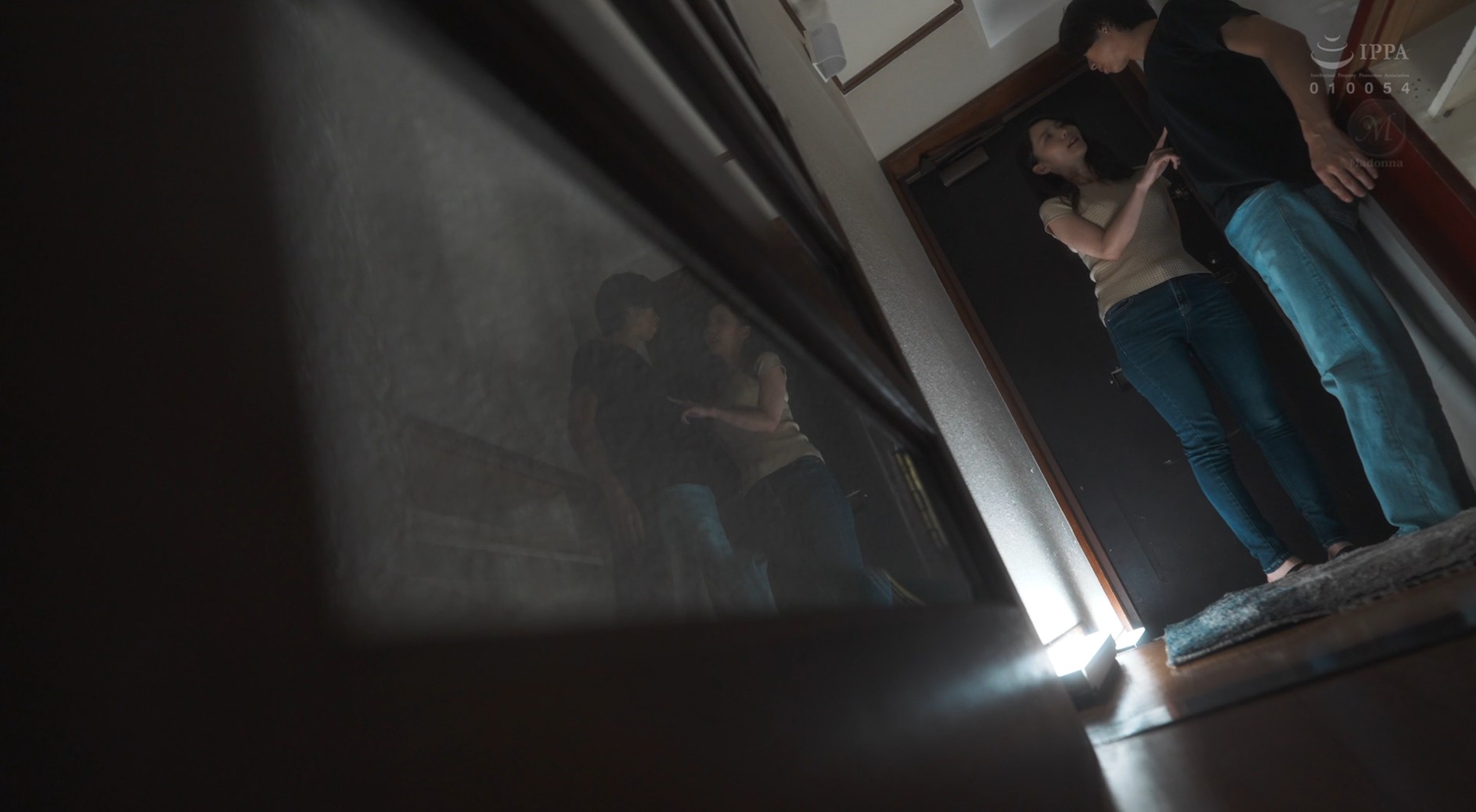 This change is seen best (or worst) in JUR-288. An experimental video where Meguri Minoshima plays a housewife who starts an affair with a neighbor. The door mirror plays a big part in the presentation, and there are some emulated shots using it and the fish eye lens. It’s a pretty decent drama if you can make it out, that is. The camera is angled in such awkward places that don’t capture the action, the lighting is far too dark at times, and then we have some of the oddest camera work I have seen in a long while.