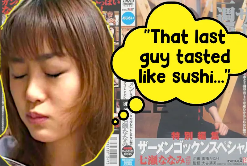 However, one of her most popular works was her "One Week Semen" video. In what sounds like the most extreme diet regimes ever, Nanami-chan did a video wherein she stayed with eight guys in a house for a week. Her only sustenance was the semen they supply her.