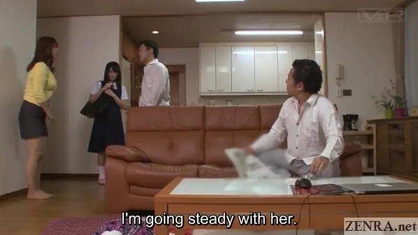 THE GOOD ANSWER also contains scenes for fans of CMNF and ENF play early on in the first part where Nana loses her clothes, but everyone around her stays dressed. Also the final scene in this title is a full-on 'old vs. ' nocturnal lesbian encounter that for some reason was left out of the trailer. With this, THE GOOD ANSWER even has portions dedicated to fans of extremely same-sex romance.