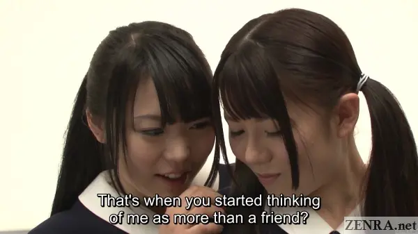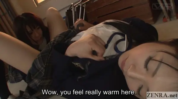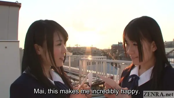 What's more, the final scene breaks the fourth wall.  We're given real access to the real YUI KAWAGOE and MAI ARAKI, real life lesbian friends who exchange real letters of admiration that each reads while the other tears up.  This of course is followed by real lesbian lovemaking full of natural embarrassment.  It's a fantastic way to cap a wonderful title that fans of Japanese lesbians should find a pleasant treat to watch.