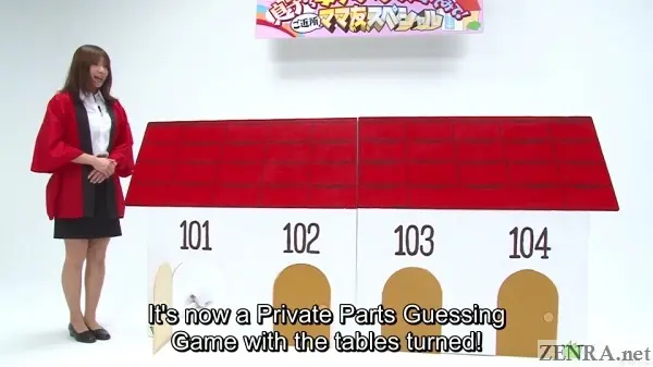 If there ever was a JAV series that encompasses pretty much every kick-ass theme and trope of adult video and jam-packs it into one 150 minute release, it's THE PRIVATE PARTS GUESSING GAME by ROCKET. This series, mainly directed by veteran TAROU KANBE who has been involved in weird JAV for almost two decades, is the pinnacle of outlandish game show play. It's a series that dots all i's and crosses all t's. Pretty much the only thing not yet done (yet?) is newhalf contestants, but you never know...
