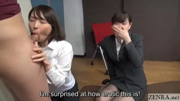 Do real female employees need to provide male coworkers 'erection support assistance' in the middle of the day? Doubtful, but accidental arousal and working in JAV production is a very real issue that I'm sure bathrooms at various studios are often used for in conjunction with 'stress relief'. Alone of course. Most definitely alone. However, as shown in SPECIAL TRAINING COURSE, alleviating pent-up stress via blowjobs, handjobs, sex toys, and even sex is on the table.