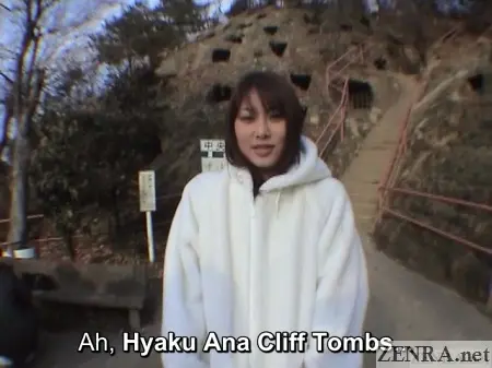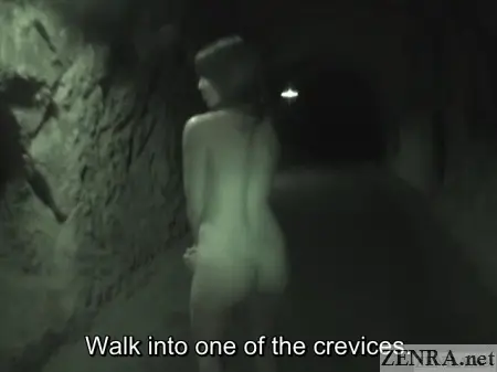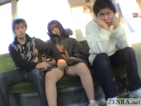 ABSOLUTELY STUPID NUDITY BEGINS even for a gung-ho outdoor exposure release is extra rough. This was shot well before the slightly slicker titles we've already shown on ZENRA and the tried-and-true format was still a work-in-progress. This title also featured brief amateur flashing in between the actual scenes. Here, an amateur Japanese woman not involved in the main production was quickly interviewed out in the street somewhere and asked to flash her private parts. We weren't too thrilled with these scenes compared to the regular ones, but were very surprised to see a very MYUU going by an alternate stage name appear in one of them.