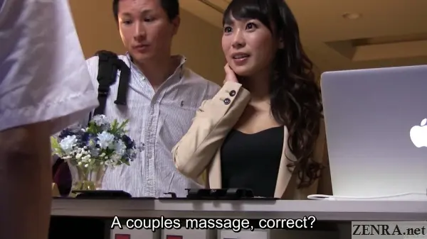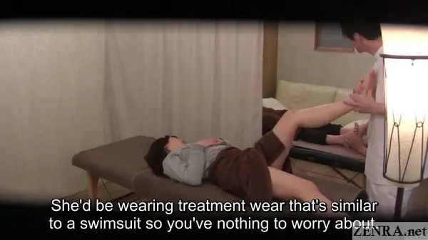 1. As reviewers on Japanese sites pointed out, it would have made a ton more sense and would have resulted in a way better release if the boyfriends remained in the room while the girlfriends received their erotic oil massages. Of course to make it seem less contrived, he could have had earphones placed over his head pumping in more Muzak while his girlfriend and the law-violating masseur do their thing while trying to remain covert.