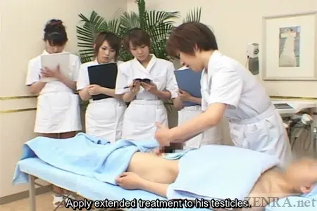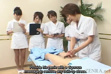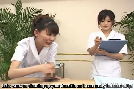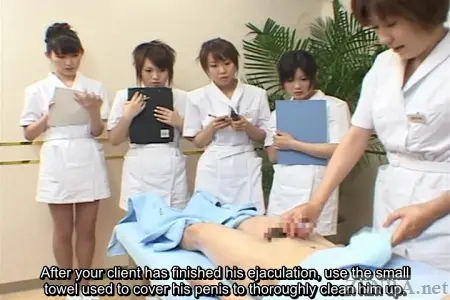 In this production, we are given a rundown of what the average full course (approx. 90 minute) service entails. An added bonus is the fact that since today is a training day, rather than only one cute Japanese beauty working on your exposed manhood in this CFNM vision from heaven, we are given the opportunity to have an entire group of them each take turns in order to hone their skills.