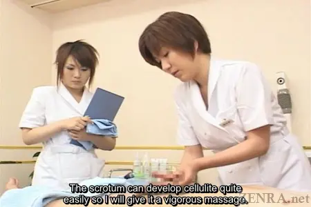 The first thing on the menu after removing your pants and undergarments is a slow and tender massage of your groin area with a liberal amount of massage oil. While this is happening the four trainees look on and take careful notes. Some even go through the motions in the air on their imaginary stunt-cocks. After the massage portions concludes, your cock is now lathered up with a special sable cleansing treatment akin to the hard-creme makeup masks some woman wear in order to give their faces a healthy glow. Although having a hard crème applied to your cock may sound somewhat uncomfortable, do not worry; the crème itself has been designed specifically for penile use so it will not turn rock hard like face masks do and a beautiful Japanese woman with years of experience in cock-handling will lovingly apply it to your hard member as her trainees look on and anxiously await their turn to handle a real live customer cock.