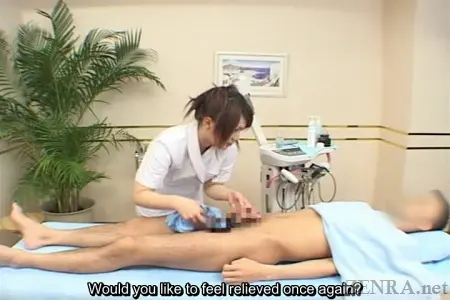 After this process is complete, the masque is lovingly washed off and a second sensual massage is performed on your hardening manhood. This time, the massage is a bit longer and more involved with unique stroking patterns such as a two handed pumping motion along with delicate finger-play around the head of the shaft and perhaps it is due to the trainees carefully staring at your cock or maybe it's the pouting lips curving into a half smile by the penis technician working on your cock, but the stimulation has nevertheless led you to reach the point of no return and with a quick, blurted apology you ejaculate all over the surprised hands of the masseuse as her trainees look on in shock.