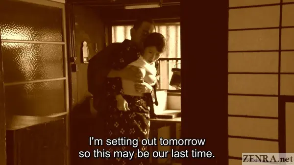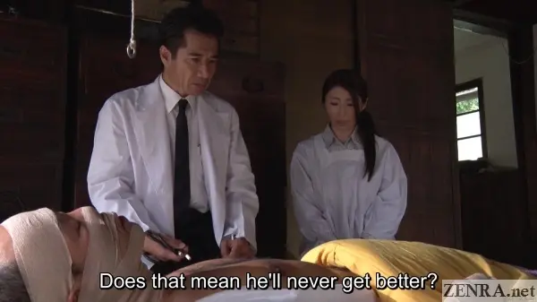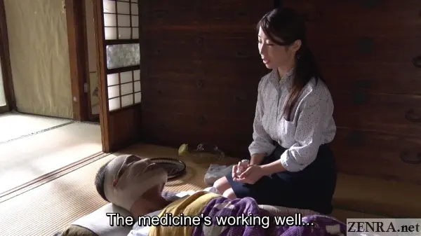 He's bedridden, covered in bandages nearly from head to toe, and his vernacular consists of nothing more than grunts.  The only part of him that still seems to work is his manhood which he very insistently has his wife take care of more often than what's considered normal.  Also given his ailments and his status as the quintessential 'Japanese man of Showa', reciprocating sexual affection does not happen at all.