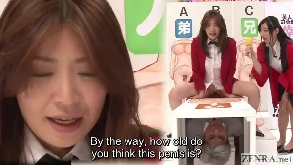 RIRI doesn't go about this on her own. While she still wears her red button-up host garb, the real hosting duties are handled by MAI HENMI, most known among ZENRA subscribers as the super cute and naughty massage therapist teacher from the best massage JAV title of all time. If she stuck around longer, I could see her as a worthy replacement to RIRI, but alas, she totally bowed out of the industry and is doing gosh knows what today. Seeing her make RIRI even more embarrassed by goading the contestants on during the vagina inspection round was priceless. She played the 'little devil' role to perfection.