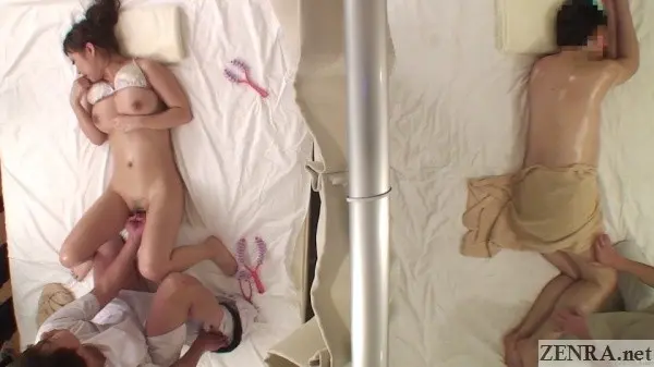 One of the most popular types of JAV movies we show at ZENRA are massage ones. What's also increasing in popularity are movies that feature risky sex. So why not combine them? How about a massage JAV that features not one, but two people getting treatments, but with one of them receiving salaciously inappropriate services instead of a normal rub-down? HOT ENTERTAINMENT released a trilogy of titles based on this theme some time ago and finally after a lengthy gap, we're showing the second edition of GOLD DIGGER MASSAGES WITH SUGAR DADDY ONE CURTAIN OVER.