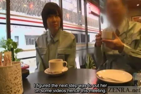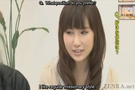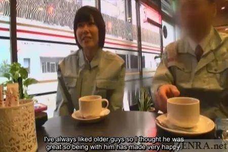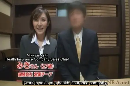 Each of the four scenes begins with an on-location interview. Outside of the nearly pure white studio, we see glimpses of 'real Japan' via the aforementioned ramen shop, an izakaya (Japanese style whatever-ya-got restaurant), a coffee shop, and a less than desirable housing unit. Here, the couples are initially introduced and are asked about their stories. Conversation centering around their dating history together, how did they meet, etc., is carried out before finally talking about their desires for taking part in the 'challenge'. At the end, dates are confirmed and a studio map along with a nice 10,000 yen x 2 participation bonus is handed out. The studio itself is bare-bones and empty, yet due to the warmth that the one-and-only Myuu-san brings (yes, the same Myuu-san who has hosted a plethora of CFNM films on Zenra), an aura of coziness is present. A second round of interviews takes place with the timid couples. Timid, due to fact that they'll be nude and engaging in the most carnal of acts in a short moment while being filmed. These second interview rounds focus more on the naughty parts of their relationships rather than the more mundane details covered earlier. Here, Myuu-san with her ribald sense of humor, sneaks in lewd questions about fetishes and memorable sex acts and surprisingly digs out answers. One of the biggest upsets came from the third couple--the one with the huge age gap. That timid accounting employee wholeheartedly enjoys having her anus licked! Fortunately, her partner gives and gives and even receives some in the double rimjob they engage in as they 'warm' themselves up for the main event. Most couples have mentioned that they've always engaged in safe sex--intercourse using a condom. However, the objective of today's event is to see how long they can go without a condom. Can they make it to 1000 thrusts? What if they finish too early (hint, this happens more than once) or too late (this also happens...but...)? The rules of the contest when it comes to timing are anything but forgiving, but Myuu-san, being the unsullied angel she truly is, offers couples who finish too early a deal: they can go for another round right away and if a second ejaculation is achieved precisely on the 1000th thrust, they will receive half the . This second go-around is quite the tall order. In fact, one couple came within 140 thrusts of the goal before accidentally finishing. Going from freshly ejaculated to rock hard and ready to finish once again in 140 thrusts is nigh on impossible--even for the most sprightly amongst us yet one couple tries their darn hardest. The reactions to the couples who had an early orgasm are hilarious: the female boss tersely instructs her younger co-worker to get to it whereas the college couple's beau also plunges right back in mixing his rebounded stiffness with fresh semen and the womanly juices of his lover. Doing the act bareback for the first time in combination with that unique milky sensation surely feels soundly piquant.