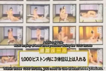1000 Pump Nakadashi Challenge Marriage is quite the endeavour here, there--or anywhere really. The immense amount of commitment two people must adhere to is nerve-wracking and the responsibilities and loss of independence that comes with it may be too much to bare for the weakest amongst us. Of course, marriage is simply a huge step up life's stairway, though for the youth (and post-youth) of Japan, that step is one that they so dreadfully fear to tread. The reasons why matrimony amongst the willing and able in Japan is on the decline can take a book to spell out--it's that detailed of an issue. There are so many things bringing the youth down and scaring them off from righteous commitment. However, for the sake of the country, things must be done to alter the status quo. One such unique game of skill and fun--of the sexual kind--takes center stage today. From the first smatterings of on-street interviews of presumed Japanese couples to a quick rundown of the burgeoning marriage issue, the building blocks of this strange yet unique game come together. 'Coupled Wanted!' reads a large banner on the homepage of a famous studio. Although the initial advertisement makes no mention that non-hitched couples are preferred, due to Japan's woefully low numbers of married folk, only unattached couples make the final cut for this strange game of endurance and chance. The game itself is quite simple: have sex without a condom using at least three positions and finish exactly at the 1000th thrust via ejaculating on your partner's face. It's not immensely challenging by any means and couples are pining for the chance at it as the for success comes in at a staggering one million yen (approximately $10,000USD). When your average twenty-something Japanese salaryman only making a fraction of that a month, having an extra million yen in the bank is desirable. Calling this avarice would be a travesty.
