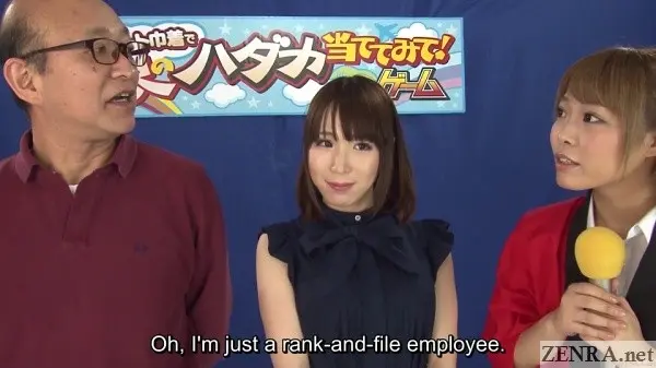 The third edition of RAISE THE SKIRTS EDITION yet again features a different host. No, it's not RIRI KOUDA. While still active when this was shot, I figure her schedule and ROCKET's didn't work out hence her absence. This time we get the VASTLY under-rated HARUNA IKOMA. I don't consider myself an uber-fan given her output not being too vast, but I've always had a soft spot for her. She really is something else looks-wise. Perhaps the beauty mark on her chin may throw some people off, but with or without it, I think she's one of the more naturally beautiful women to have done JAV in recent memory. She's also really, really naughty (we showed a real creampie group sex movie with her after all!). Her visage almost, but not quite, made me want to look away from the fantastic always-on nudity this game show entailed. Yes, she's that much of an eye-pleaser though when it comes to overall great hosting, RIRI will forever be the best.