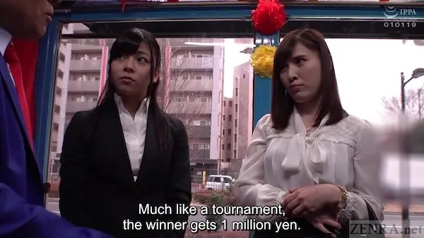 If you've seen other MAGIC MIRROR movies, then the basic flow should come as no surprise:  women are approached on the streets of Tokyo to take part.  Before it was oil massages while their boyfriends wait outside and testicle massages gone very wrong.  Now the numbers are doubled:  two women!  The focus?  Not a massage, but a game with the winner having the ability to take home a decent amount of .  The loser?  Naked, embarrassed, and eager to play a very naughty penalty game pairing her with a JAV actor or two.