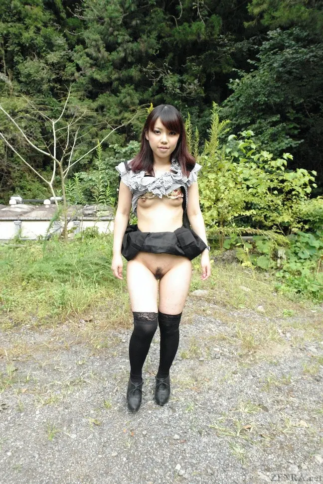 Could this be actual Japanese nudity? Petite and daring and out in her birthday suit and trying not to get caught!