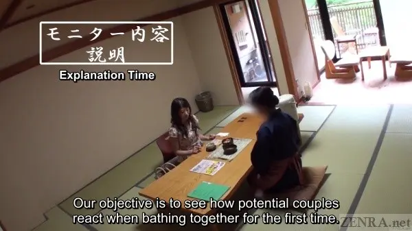 SOD CREATE, the production arm of SOFT ON DEMAND is the juggernaut of JAV movies in that they produce a ton each month; more so than most any DMM studio (you know who they are) and across most every genre. For many, one's entire craving of adult video can be supplied solely by this studio. Recently, while still filming all their great variety, they have been more known for their SOD STAR output. Featuring bigger names and simpler themes, it seems to be doing well though what we plan to show by them on a regular basis will NOT be from that label. Instead, we're sticking with our core focus which includes such things as seeing how totally real strangers of opposite genders react when bathing together--naked!--for the first time. Will this simply be an awkward encounter that goes nowhere or will it lead to informal then-and-there sex? That's the gist we see repeated across three scenes in MIXED BATHING PEOPLE MONITORING: HOW MANY MINUTES TO INFORMAL SEX?