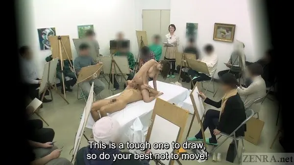 The ultimate masters of thinking outside of the box in ways that are odd, but mainstream enough to get enough interested eyes, brushes, and erections at attention and with a decent-sized budget to boot, month after month, year after year, quality releases like today's update show when it comes to the delightfully unusual, solace indeed has a home.  Joined again by MYUU whom we last saw the other month in a similar leadership role returns again as a bespectacled art teacher.  Also featuring a big cast of anonymous students--extras we've seen here and there or the real deal?!--along with surfer hunk who was already in his mid-40's when this was shot but barely looks it MINAMI YOSHIYA as the male model in all three scenes, EMBARRASSING NUDE ART CLASS - SEX IN FRONT OF STUDENTS is full-featured, full of accidental arousal, and full of pleasure juices all put to the tune of dutiful pupils putting pencil to paper.