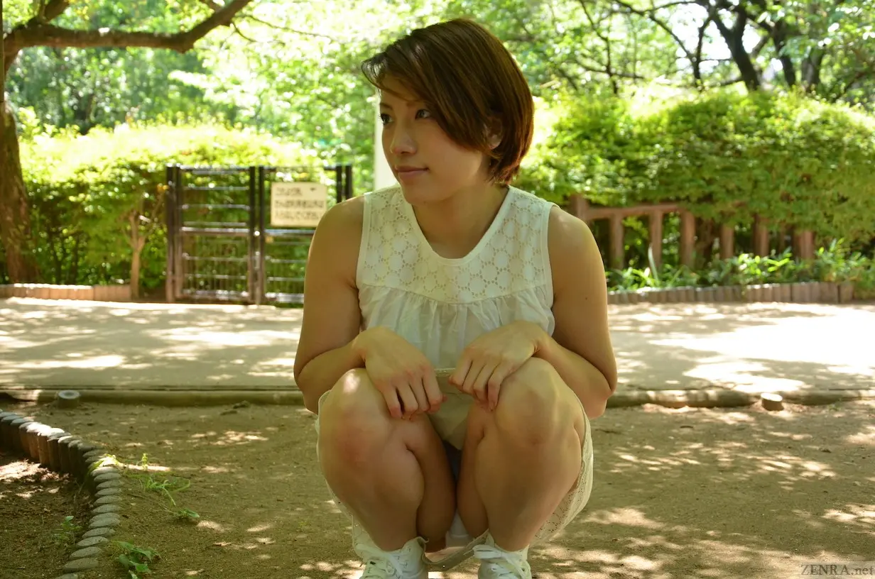A babe she is. Normally short hair doesn't do it, but KUMI alongside SORA SHIINA are two actresses that have faces made for it. With a short career, towards the end she did let her hair out a bit longer and it was darker to boot--both somewhat lessening her allure. The short, tawny look totally suits her. This is a lady who obviously loves the outdoors as a tan like that is not made in any salon and outside is what DREAMROOM provides her in THE BEAUTY OUT IN TOWN WEARING ONLY A SWIMSUIT. This is as close to bona fide nudity you can get in this era and they still did a commendable job.