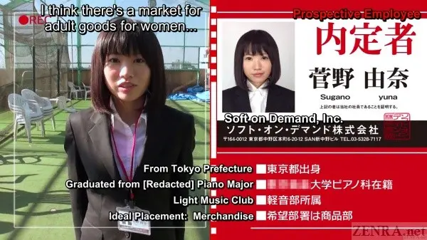 What are the chances ten fresh-faced potential new hires--all women and all quite attractive--suddenly find themselves taking part in a lively game of strip rock-paper-scissors with over a dozen fans and of course hosted by none other than MYUU? In JAV Land, quite high! What begins as simply giving potential new hires a seminar on how SOD goes above the norm to cater to their users needs (hosted by a surprisingly proficient HARU HARA) descends--literally as we venture down to SOD's legendary 3rd floor open air office--to crazy stripping and more with MYUU in her trademark red jacket hosting.