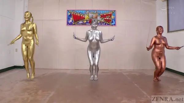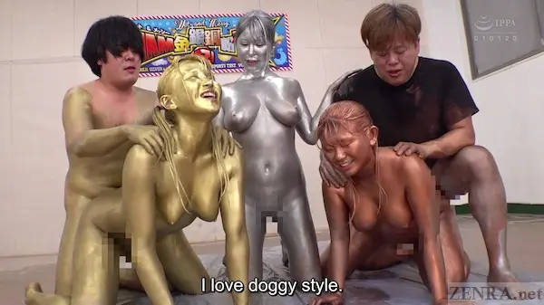 There's many things one can say about WET AND MESSY - PAINTED GOLD, SILVER, AND BRONZE SPORTS TRAINING, but one thing this extra packing ROCKET movie pushes more than everything is pure, unabashed...joy! I swear this may be the happiest JAV movie we've ever showed. Sure, we've had bubbly movies before and there's always those lovely off-shoots even during the most serious drama releases with cast cracking jokes, but few movies can simultaneously be so weird yet wholesome as today's update. It's hard to put it into words, but we'll do our best!