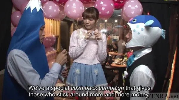 The rundown: we target eager women who want to make ! How? Ladies Day Campaign! Film a quick promotional clip for Izakaya Furu-chan (meaning 'old') and immediately get 5,000 yen off your bill. Stick around and answer some naughty questions plus a wee bit more (see screenshots) to win even more . It's OK! Your boyfriend will never find out! And sure you can view the izakaya the whole time, but thanks to our magic one-way mirror, they can't see in!