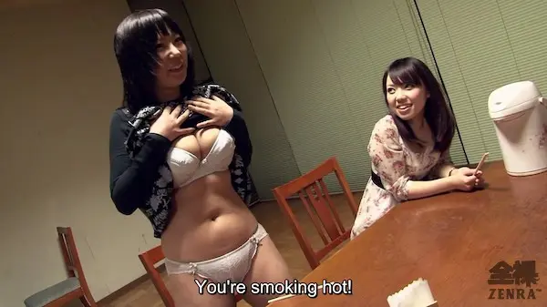 TOGETHER WITH MY FRIENDS, not to be confused with TOGETHER WITH MY FRIEND is for DREAMROOM at least, a very unique movie. Starring not one nor two, but three actresses, we get something that pushes into orgy territory (really, when can one safely use that word? Ten participants with at least four being women?). The three seemingly are on a hot springs trip but are otherwise sitting around a barebones table in a relatively empty room that looks closer to a stripped office for rent than the private lounge at any ryokan. But hey, JAV is JAV and budgets are a thing so one cannot complain much.