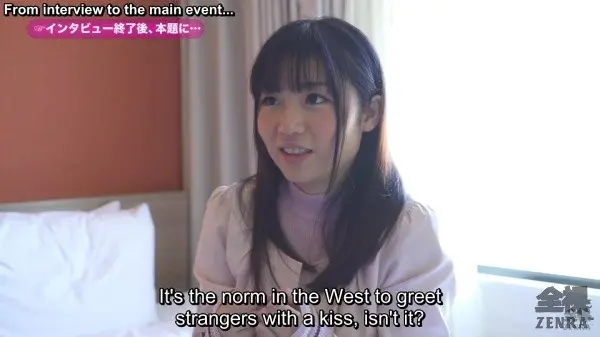 One of the most unusual things about PEOPLE MONITORING: WILL REAL STRANGERS GO FROM KISSING TO SEX? is the title card. In what may be a record, we don't get it until about 20 minutes in (!). Director Netsu Yujin whom we have had a love-hate relationship with at ZENRA is on fire here as he is totally behind the camera and mute. When he just handles director roles, his imagination runs riot. The first scene rather than being shot at a hotel is done in a van. Normally, the van environment works better for these types of guerilla encounter movies, but they come up with a good reason why a hotel is better: a bed. Thus, the remaining four encounters are all done in one and every one delivers for various reasons. I'd like to--and even took expansive notes on it--go over each scene for they all put unique spins on the theme. But with this review running long, a very quick summary will suffice: